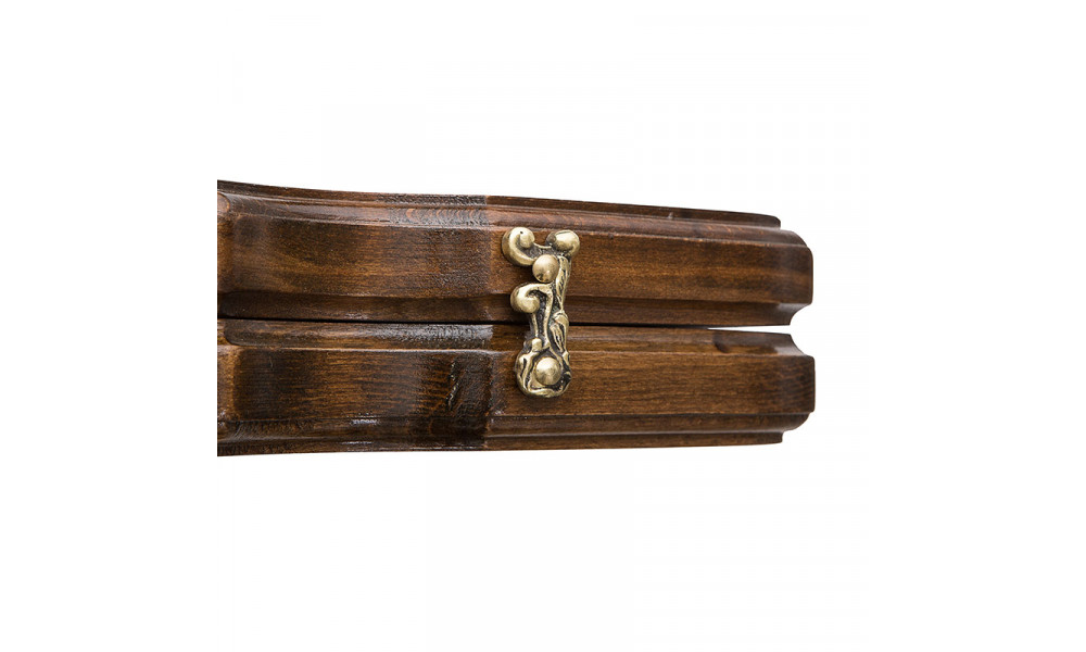 Петли, удерживающие створки между собой, и крючки делаются из бронзы, которая известна своей мягкостью. Именно это свойство гарантирует, что даже после сотни открытий доски, все будет работать так, как и сразу после покупки.
